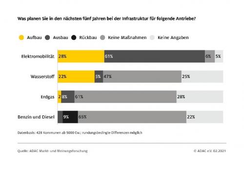 % der Orte. Zum Vergleich: Nur jede fünfzigste Kommune setzt auf Erdgas. Jede Elfte rechnet mit Rückbau des Infrastrukturangebots für Benzin und Diesel.