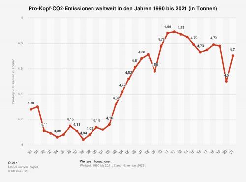 Im Jahr 2021 sind nach Angaben des Global Carbon Projects weltweit rund 4,7
