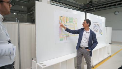 Stefan Leistner, Director Production bei Proton Motor Fuel Cell, hat den Überblick, wo die ersten Anlagen in der neuen Halle stehen sollen Quelle: E&M / Davina Spohn |