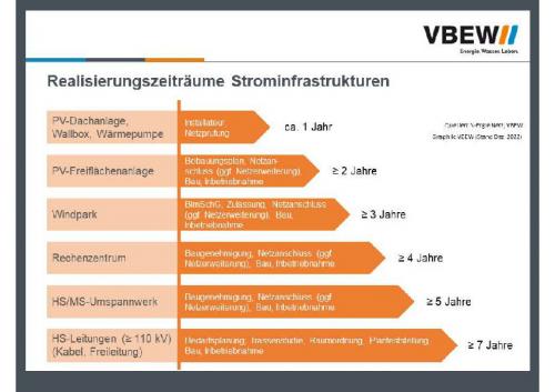 Auch in Bayern kämpft die Energiewende mit überlangen Genehmigungsdauern. „Sieben Jahre und länger kann hierzulande die Errichtung eines neuen Umspannwerkes oder einer Hochspannungsleitung in Anspruch nehmen. Wenn wir so weitermachen, schaffen wir die Klimaneutralität 2040 nie, da die alten Anlagen schneller ihr Lebensende erreichen als wir die neuen bauen“, sagt Detlef Fischer, Hauptgeschäftsführer des Verbands der Bayerischen Energie- und Wasserwirtschaft (VBEW). Eine PV-Freiflächenanlage sei nicht unter zwei Jahren zu errichten, es könne aber auch mal 15