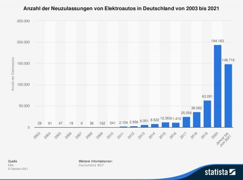 Mit den Förderanträgen und den Zulassungszahlen geht es steil nach oben. Zum Vergrößern bitte auf die Grafik klicken Quelle: Statista |