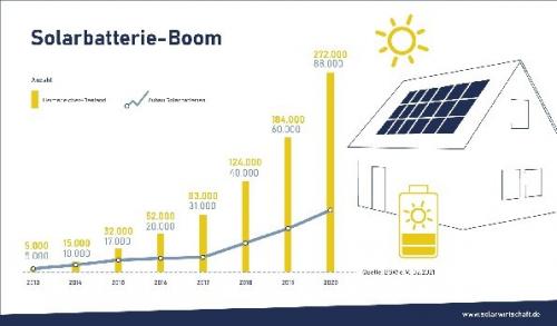 Als Grund gibt der Verband das gestiegene Kaufinteresse von Eigenheimbesitzern an: Doppelt so viele Eigenheimbesitzer als noch im Jahr zuvor haben 2020 in eine Solaranlage investiert. Rund jeder zweite davon schaffte sich dazu noch eine Solarbatterie an, um den selbst erzeugten Strom rund um die Uhr nutzen zu können.