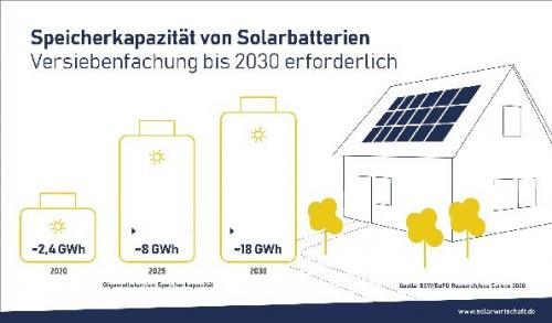 Die bedarfsgerechte Bereitstellung von Ökostrom und den Ausgleich kurzfristiger witterungs- und tageszeitbedingter Erzeugungsschwankungen der Solar- und Windenergie würden allein schon die gesetzten Klimaziele notwendig machen. So muss sich die Batteriespeicherkapazität laut BSW bis zum Jahr 2030 versiebenfachen − von derzeit 2,4