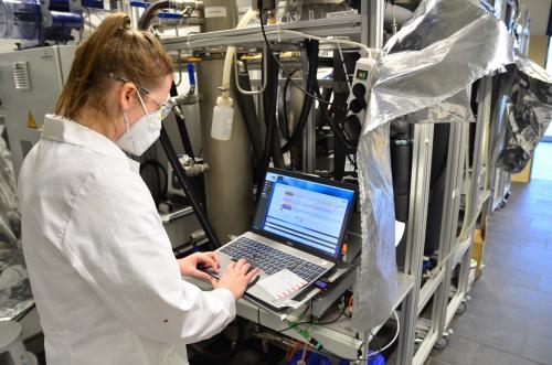 Juliana Rolf überwacht die Wasserstoff- und Methanproduktion an der "HyTech"-Versuchsanlage Quelle: FH Münster / Frederik Tebbe |