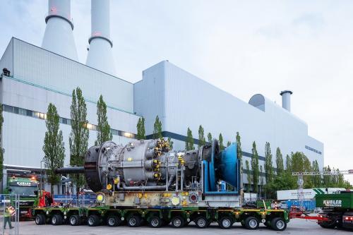 Schneller Abschied: Nur acht Minuten hat es in der vergangenen Woche gedauert, um die ausgediente Turbine am Energiestandort Süd der Stadtwerke München (SWM) aus dem Kraftwerk auf das gegenüberliegende Großmarktgelände zu bringen. Eine reife Leistung angesichts eines Gewichts von 200 Tonnen und teilweise beengter Verhältnisse. Der Abtransport ist Teil der