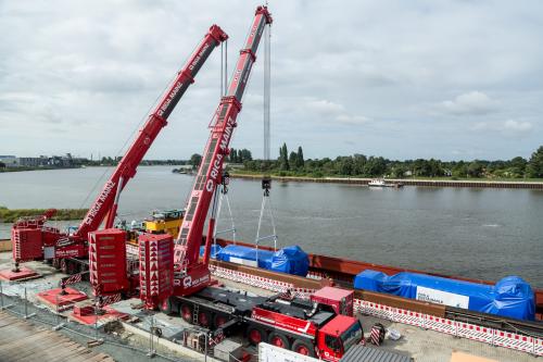 Gleich zwei Autokrane mussten ran, um die je 186 Tonnen