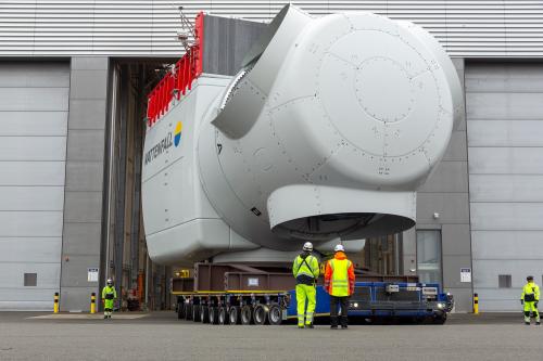 Das erste seriengefertigte Maschinenhaus einer Offshore-Windkraft-Turbine vom Typ SG 11.0-200 DD hat die Werkshalle von Siemens Gamesa in Cuxhaven verlassen.