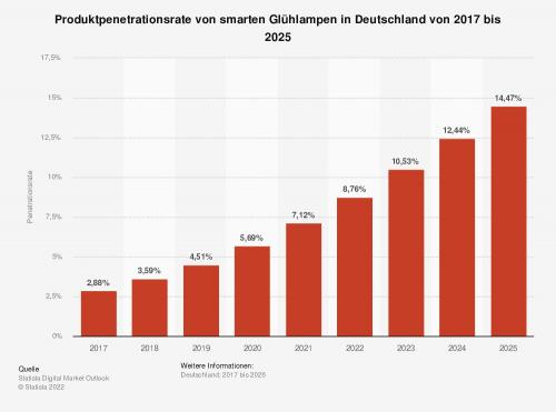 Die Produktpenetrationsrate von smarten Glühlampen in Deutschland betrug nach Angaben von