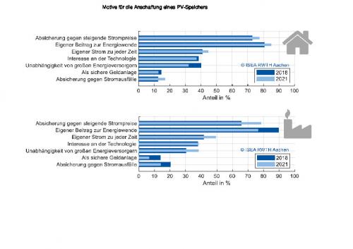 Motive für die Anschaffung eines PV-Speichers (zum Vergrößern bitte auf die Grafik klicken) Quelle: RWTH Aachen/ISEA |