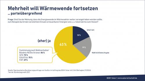 Laut BSW Solar ist die ungewisse Ausrichtung der Energiepolitik durch die Politik ein wesentlicher Grund für den Rückgang. Dabei befürworten 63