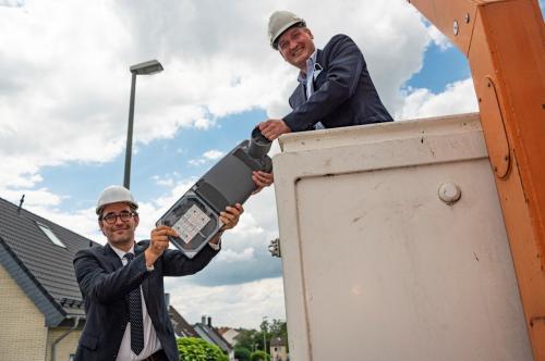 Ihr gemeinsames digitales Projekt haben WSW-Chef Markus Hilkenbach und Engie-Geschäftsleitungsmitglied Marcus Sohns im Wuppertaler Ortsteil Schöller-Dornap vorgestellt. In dem Quartier im Westen der Stadt ist eine „mitdenkende“ Straßenbeleuchtung installiert worden.