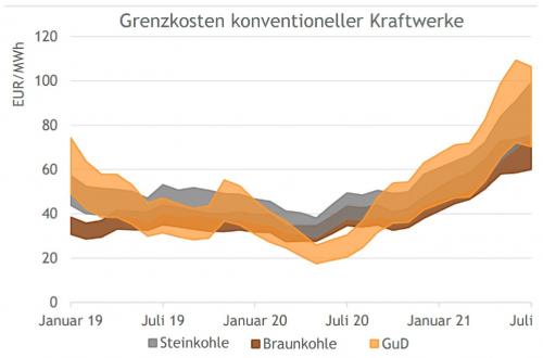 Preise im europäischen Emissionshandel explodiertAuch die Preise für Erdgas sind im Juli 2021 mit mehr als 36