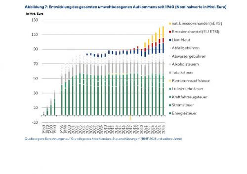 Der Anteil von Umweltsteuern an der Finanzierung des Staatshaushalts sank demnach im Jahr 2021 auf 3,7%. Damit seien die nötigen Klimaschutzmaßnahmen nicht zu finanzieren, kritisiert das FÖS. Im Zuge der ökologischen Steuerreform erreichten im Jahr 2003 Umweltsteuern an den Gesamteinnahmen des Staates aus Steuern und Sozialversicherungsbeiträgen einen Höchststand von 6,5