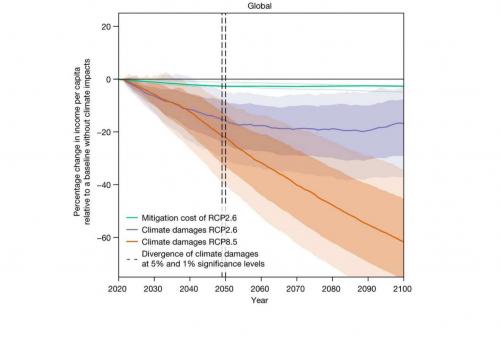 Nature eine Studie zu den globalen Ausgleichskosten für Folgen der Klimaerwärmung. Demnach übersteigen die Schäden durch die ungebremste Klimaerwärmung um das Sechsfache die Ausgaben, die erforderlich sind, um die globale Erwärmung auf 2