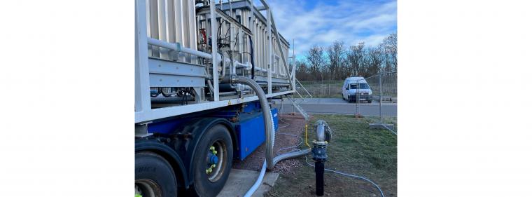 Ein LNG-Tanklaster entlädt Flüssigerdgas in ein Tanklager Quelle: SW Merseburg |