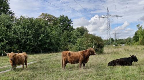 Robust, wetterfest und mit ihren zotteligen Haaren ein richtiger Hingucker: schottische Hochlandrinder. Elf Mutterkühe mit ihren Kälbern sowie ein Bulle weiden seit September auf Heideflächen im Landschaftsschutzgebiet „Lechauen Nord“ in Augsburg. Die Flächen befinden sich unter einer Hochspannungsleitung der Augsburger LEW Verteilnetz (LVN). Sie wurden von der LVN vor einigen Jahren als Ausgleichsfläche für die darüber verlaufende Leitung bereitgestellt. Die Rinder werden drei bis vier Wochen auf der Fläche grasen. Sie halten damit die hochwachsenden Gräser und aufkommende Sträucher kurz. „Auf diese Weide sorgen sie dafür, dass die licht- und wärmebedürftigen Bewohner ideale Bedingungen vorfinden“, so der Netzbetreiber.