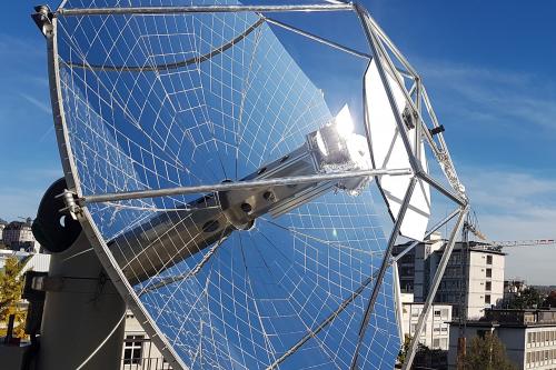 Die Mini-Solarraffinerie mit einem 5-kW-Solarreaktor auf dem Dach des Maschinenlaboratoriums in Zürich betreiben Forschende der ETH Zürich bereits seit zwei Jahren. Jetzt konnten die Wissenschaftler die technische Machbarkeit unter Beweis stellen: In einem mehrstufigen Verfahren produziert die Anlage in einer thermochemischen Prozesskette aus Sonnenlicht und Luft flüssige Treibstoffe wie Methanol und Kerosin. Dies zwar nur in homöopathischen Mengen, dafür aber unter realen Feldbedingungen. In einem repräsentativen Tagesbetrieb beträgt die produzierte Menge an Syngas etwa 100 Standardliter, die sich etwa zu einem halben Deziliter reinem Methanol verarbeiten lassen. An der Energieeffizienz müssen die Forschenden jedoch noch arbeiten: Der höchste gemessene Wirkungsgrad des Solarreaktors liegt bei 5,6