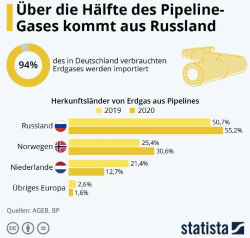 müssen importiert werden. Der Rohstoff erreicht uns fast ausschließlich über Pipelines und ein weit verzweigtes Verteilernetz. Aktuell kommt über die Hälfte des hierzulande verbrauchten Erdgases aus Russland. Außerdem sind noch Norwegen und die Niederlande wichtige Lieferanten.