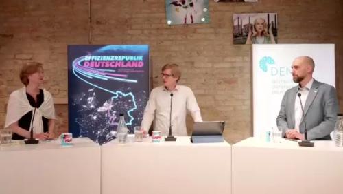 | Die Diskussion mit (v.l.) Kerstin Andreae (BDEW), Moderator Malte Kreutzfeldt (Taz), Christian Noll (Deneff) Bild: Deneff |