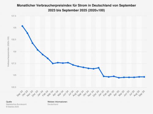 Im September 2025 lag der Verbraucherpreisindex für Strom in Deutschland bei einem Wert von 124,7