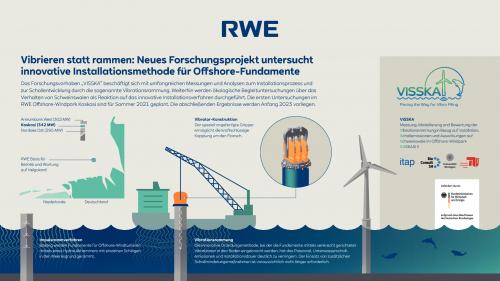 Bislang werden Fundamente für Offshore-Windturbinen mittels eines Hydraulikhammers mit einzelnen Schlägen in den Meeresgrund gerammt. Das neue, schallärmere Verfahren hingegen nutzt senkrecht gerichtete Schwingungen, um die Fundamente in den Boden einzubringen. Der Einsatz von zusätzlichen Schallminderungsmaßnahmen zum Schutz von Meeressäugern ist bei der innovativen Vibrationstechnik voraussichtlich nicht länger erforderlich.