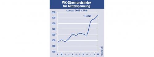 Wie der Verband der Industriellen Energie- und Kraftwirtschaft (VIK) mitteilte, gewann der Index gegenüber dem Vormonat