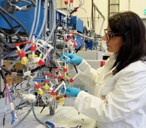 Trotz der guten Voraussetzungen ist die wässrige Zink-Ionen-Batterietechnologie aber momentan noch weit entfernt von groß angelegter Kommerzialisierung. Die Forschenden an der Universität Bremen arbeiten derzeit daran, wässrige Zink-Ionen-Batterien marktreif zu machen. Die Forschungsgruppe von Fabio La Mantia, darunter die Wissenschaftlerin Giorgia Zampardi (Bild) konzentriert sich dabei auf die Entwicklung von neuartigen, zinkbasierten Anoden. Sie sollen die Stabilität und Lebensdauer von Zink-Ionen-Batterien verbessern. Zudem arbeitet die Gruppe an der Entwicklung von günstigen, umweltfreundlichen Kathodenmaterialien sowie der Optimierung von wasserbasierten Elektrolyten.
