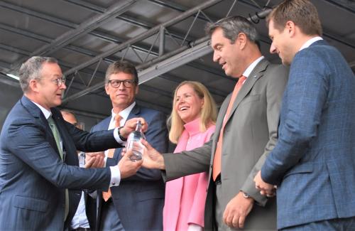 „Das wichtigste Produktionsmittel steht heute in ausreichender Form zur Verfügung.“ Der Gag machte bereits beim ersten Spatenstich für das Elektrolyse-Projekt in Wunsiedel die Runde, als die Feierlichkeiten ebenfalls durch starke Regenfälle getrübt wurden.