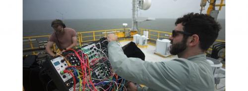 Philipp Wolf und den Regisseur Marko Roth verarbeitete im Stück "Offshore Currents" vorab im Windenergiepark aufgezeichnete Töne und abstrahierte sie radikal bis zur Unkenntlichkeit per Synthesizer in sphärische Beats, so etwa: