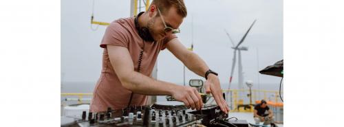Die EnBW hat am 20. Juli das wohl weltweit erste Konzert auf einer Offshore-Windenergieanlage mit Tönen aus ihrem Betriebsalltag organisiert. Die achtköpfige Crew des Projekts "Places - A musical journey" rund um den DJ