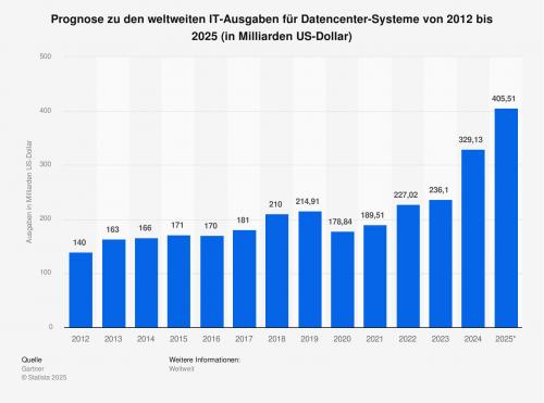 Gartner sollen sich die weltweiten Ausgaben für Datencenter-Systeme im Jahr 2025 auf 405,5
