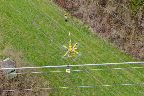 Damit Vögel Stromleitungen schneller erkennen, werden Vogelschutzmarker angebracht. Die Bayernwerk Netz GmbH beispielsweise bringt die speziellen Marker bislang aufwendig mithilfe eines Helikopters an. Das soll sich ändern: Der Netzbetreiber testet derzeit eine neue Technik mit einer Drohne. Denn die Befestigung mit der Drohne kann unter bestimmten Voraussetzungen eine Alternative zur bisherigen Montage mit dem Helikopter sein.
