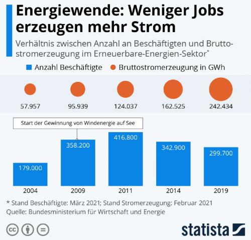 in vollem Gange ist, geht die Anzahl der Beschäftigten in der Erneuerbaren-Branche seit 2011 mit Ausnahme von 2016 konstant zurück. Laut einer Analyse des