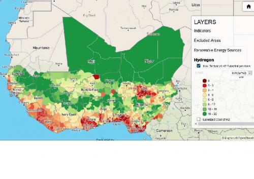 Wasserstoff-Atlas für Westafrika des BMBF Bild: Forschungszentrum Jülich Zum Vergrößern bitte auf das Bild klicken |