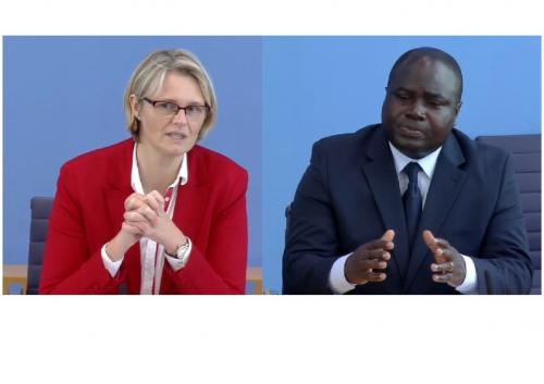 Bundesforschungsministerin Karliczek und Dr. Agbo bei der Vorstellung des Wasserstoffatlas Westafrika Bild: ZDF |