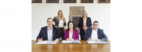 Kooperation von Schwergewichten: Die Stadtwerke Osnabrück (SWO) und die Westenergie AG wollen ab 2024 gemeinsam Projekte zum Hochlauf des grünen Wasserstoffs in Stadt und Landkreis Osnabrück entwickeln. Dafür setzten unter anderen SWO-Chef Daniel Waschow und Westenergie-Vorstandsvorsitzende Katherina Reiche am 31.