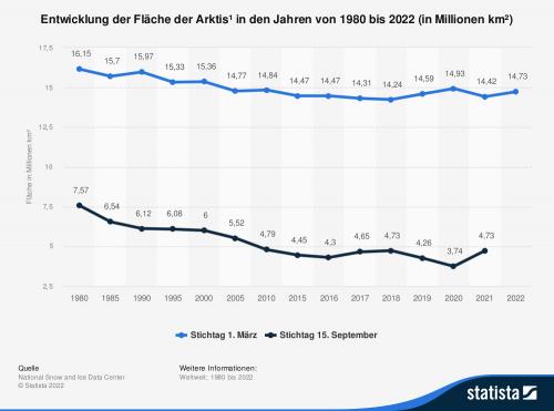 Im März 2022 ist die Fläche der Arktis mit einer Ausdehnung von rund 14,73