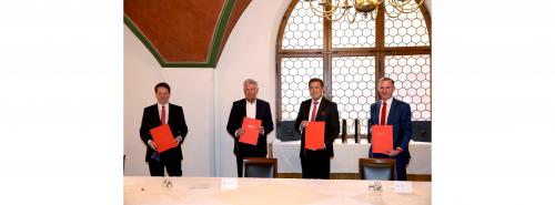 Wien und München tauschen sich künftig noch enger aus. Von links nach rechts: Florian Bieberbach (Stadtwerke München), Dieter Reiter (Oberbürgermeister München), Peter Hanke (Wiener Finanz- und Wirtschaftsstadtrat) und Peter Weinelt (Wiener Stadtwerke) Quelle: Presseamt München / Michael Nagy |