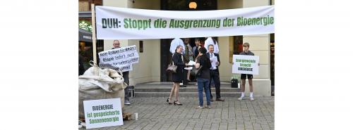 Die Demonstrierenden betonten derweil die Unterschiede und ihre Kritik an der DUH-Haltung. Es sei ihm „völlig schleierhaft“, teilte Initiator Johannes Lackmann mit, „wie die DUH die deutschen Klimaziele ohne Bioenergie zu tragbaren Kosten erreichen will“. Der Paderborner Unternehmensgründer („Westfalenwind“) ist langjähriger Windenergie-Entwickler, LEE-NRW-Mitglied und war einst Präsident des Bundesverbandes Erneuerbare Energie (BEE). Mitstreiter Hans-Josef Fell, bis 2013 für die Grünen im Bundestag, sieht Bioenergie als „gespeicherte Sonnenenergie, sie steht jederzeit zur Verfügung und ist damit systemrelevant“.