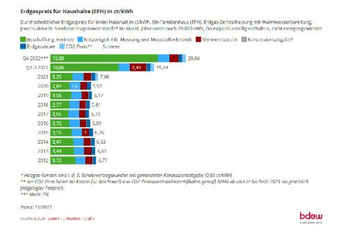 Erdgaspreisentwicklung für Haushalte 2012 bis 2022 Zur Vollansicht bitte auf die Grafik klicken Quelle: BDEW |