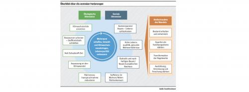 Sanieren vor NeubauUBA-Präsident Dirk Messner stellte das Positionspapier vor. Ihm zufolge ist das Bauwesen für ein Drittel der Treibhausgasemissionen verantwortlich, was bereits mit der Herstellung von Baustoffen beginne, mit der Flächenversiegelung fortschreite und schließlich beim Abriss mit den Abfällen ende. Daher sei die wichtigste Stellschraube für mehr Umweltschutz beim Wohnraumbau, dass der vorhandene Gebäudebestand wo immer möglich erhalten bleibt oder sinnvoll umgebaut und umgenutzt wird.