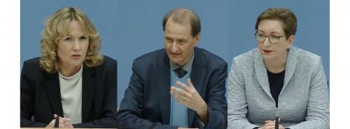 | v.li. Bundesumweltministerin Steffi Lemke (Grüne), UBA-Präsident Dirk Messner und Bundesbauministerin Klara Geywitz (SPD) bei der Studienpräsentation Quelle: BPK |