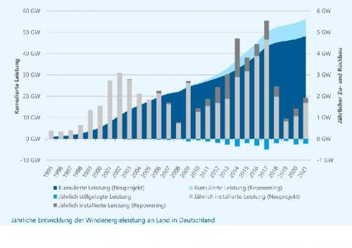 Systems nannten den Zubau von 484 Windturbinen mit einer Gesamtleistung von 1.925 MW weiterhin zu niedrig für die Klimaschutzziele Deutschlands. Bei der Präsentation der Zahlen für 2021 könne zwar ein Zuwachs von 35 % gegenüber 2020 verzeichnet werden, allerdings war dieses das zweitschwächste Ausbaujahr für Windkraft an Land seit Einführung des Erneuerbare-Energien-Gesetzes (EEG) im Jahr 2000.