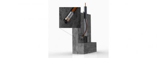 Der Ablenkschuh aus Stahlblech führt das Bohrwerkzeug in einem 45-Grad-Winkel nach außen. (zur Vollansicht bitte auf das Bild klicken) Quelle: Fraunhofer IEG |