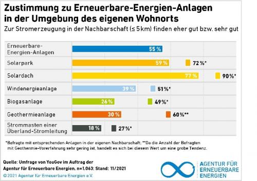 Meinung zu Anlagen für erneuerbare Energie in Deutschland Stand 2021 Zum Vergrößern bitte auf die Grafik klicken Quelle: AEE |