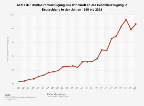 Im Jahr 2022 wurden durch die Windenergie an Land und auf See 21,7 Prozent des gesamten Bruttostroms in Deutschland erzeugt. An Land befanden sich zuletzt über 28.000 sogenannte Onshore-Windenergieanlagen, während in deutschen Gewässern rund 1.500 Offshore-Windenergieanlagen Strom in das Netz einspeisen.