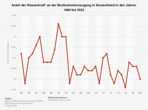 Strom. Wasserkraftwerke befinden sich hierzulande überwiegend in Süddeutschland. Bayern ist mit Abstand das Bundesland mit den meist gezählten Wasserkraftwerken. Die Daten lieferten der Bundesverband der Energie- und Wasserwirtschaft (BDEW), das Statistische Bundesamt, das Bundesministerium für Wirtschaft und Klimaschutz (BMWK), die AG Energiebilanzen (AGEB), die Statistik der Kohlewirtschaft und das Zentrum für Sonnenenergie- und Wasserstoff-Forschung Baden-Württemberg (ZSW)