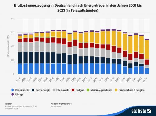 Jahren nahm der Anteil der Stromerzeugung aus erneuerbaren Energiequellen deutlich zu. Gleichzeitig verzeichneten insbesondere Steinkohle und Kernenergie einen deutlichen Rückgang.