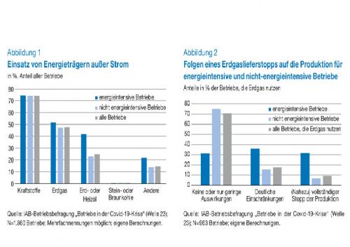 Rund zwei Drittel der energieintensiven Betriebe, die Erdgas brauchen, würden im Fall eines Lieferstopps deutliche Produktionseinschränkungen bis hin zu einer Produktionseinstellung erwarten. Bei den nicht energieintensiven Unternehmen ist es mehr als jedes fünfte. Zwar würden die meisten Betriebe auch im Falle eines Lieferstopps weiter versorgt, aber um eine Rationierung in bestimmtem Umfang käme man zunächst nicht herum, schreiben die IAB-Autoren in ihrer Studie, die in der Fachzeitschrift