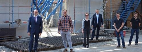 Bis Ende 2021 stellen die Stadtwerke Marburg um Geschäftsführer Bernhard Müller (l.s) das dritte BHKW am Standort Ortenberg fertig Quelle: Stadtwerke Marburg/Jonas Becker |